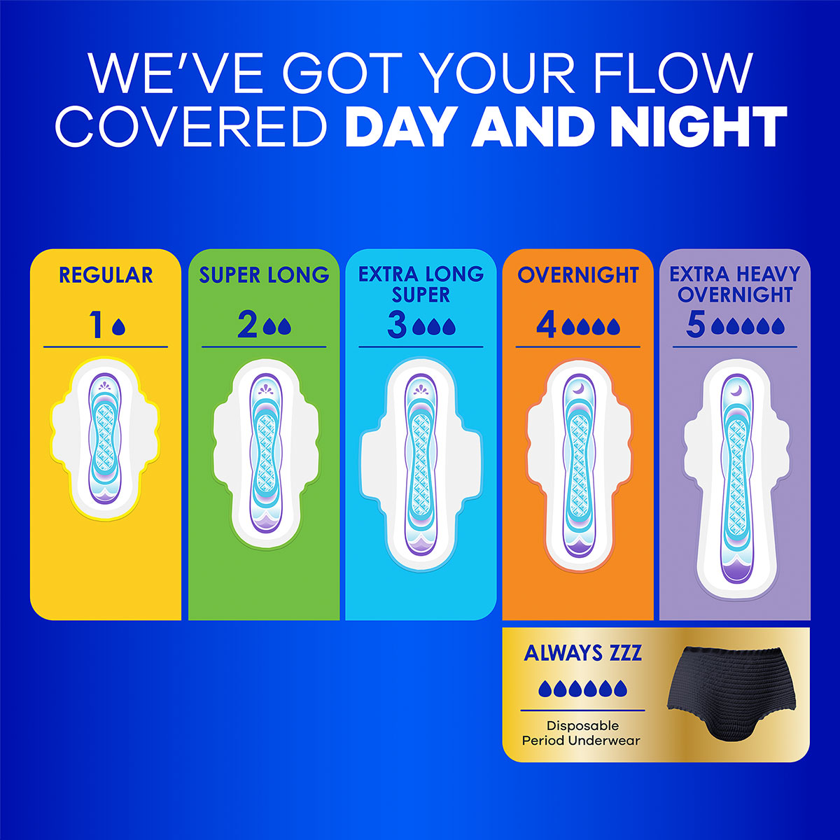On your period, sudden gushes happen without any warning. But with Always Ultra Thin, you can now say “Goodbye” to stand up gush fears! All Always Ultra Thin Pads have our 3x Protection System to give you peace of mind day and night. RapidDRY technology absorbs gushes 2X faster than the leading store brand. The LeakGUARD core locks in leaks for long-lasting protection. Plus, OdorLOCK that helps prevent unwanted odors to help you feel fresh and clean throughout your day! Hello Clean and Comfortable! With Always Ultra Thin, Fear No Gush. Always Ultra Thin Pads come in a range of sizes from 1 to 5 to fit your flow and size perfectly. If you have a light flow or need a teen-sized pad, then we would recommend using our Always Ultra Thin size 1 to 3. If you have a heavy flow or want overnight protection, then we recommend using our size 4 or 5 Ultra Thin Pad. Additionally, all Always Ultra Thin packs are made of 50% recycled plastic. Remember that all Always Ultra Thin Pads are FSA & HSA eligible! Check with your FSA or HSA plan provider for information on the coverage of period care products.